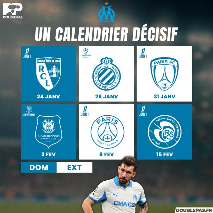 Ce samedi, l’Olympique de Marseille reçoit le RC Lens, darling de la Ligue 1, capable de tenir tête aux ténors. S’ensuit un déplacement périlleux à Bruges. Malgré un bilan comptable peu flatteur, l’escouade provençale a encore la possibilité de poursuivre l’aventure européenne en cas de victoire. Puis, toujours hors de ses bases, Balerdi et les siens se frottent au Paris FC, qui peut surprendre.
